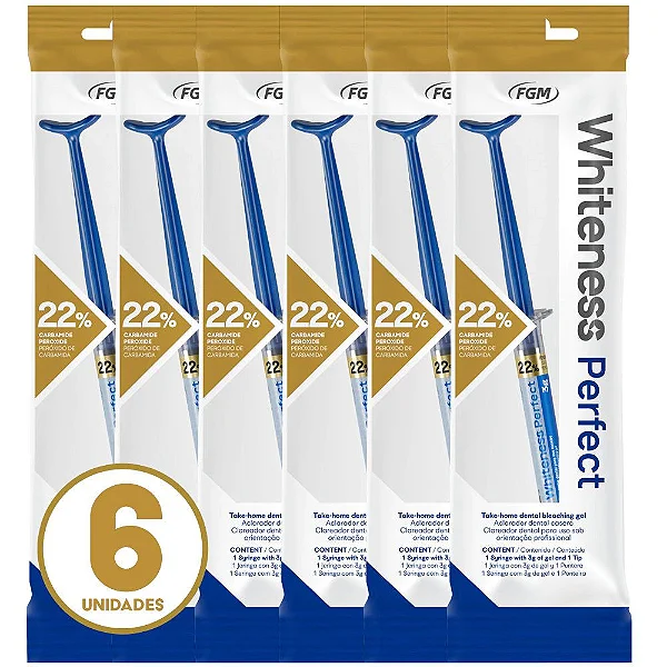 6 Seringas de 3g de gel clareador Whiteness Perfect 22%.