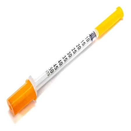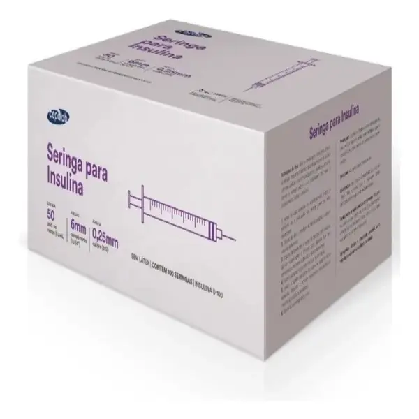 A seringa é um dispositivo médico descartável, transparente e atóxico, projetado especificamente para aplicação de insulina. Possui capacidade de 50 UI, graduação precisa em 0,01 ml (1 UI), agulha fixa tri facetada e siliconada, acondicionada em embalagem individual estéril.